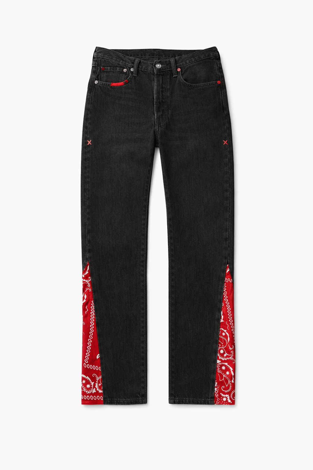 The Bandana Panel Straight Jeans Collection combines clean structure with bold streetwear energy. Designed in a classic straight-leg fit, each pair features premium denim construction and signature red paisley bandana panels along the sides for a standout look. Available in Black, White, Khaki, and Vintage Blue, this collection delivers versatile style, everyday comfort, and a strong urban statement.